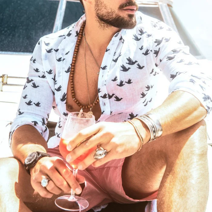 4. Летние пляжные рубашки для мужчин: Лучшие летние льняные рубашки для мужчин, сочетающиеся с белыми повседневными штанами-лучший выбор для гостей на свадьбе на летних пляжных свадьбах