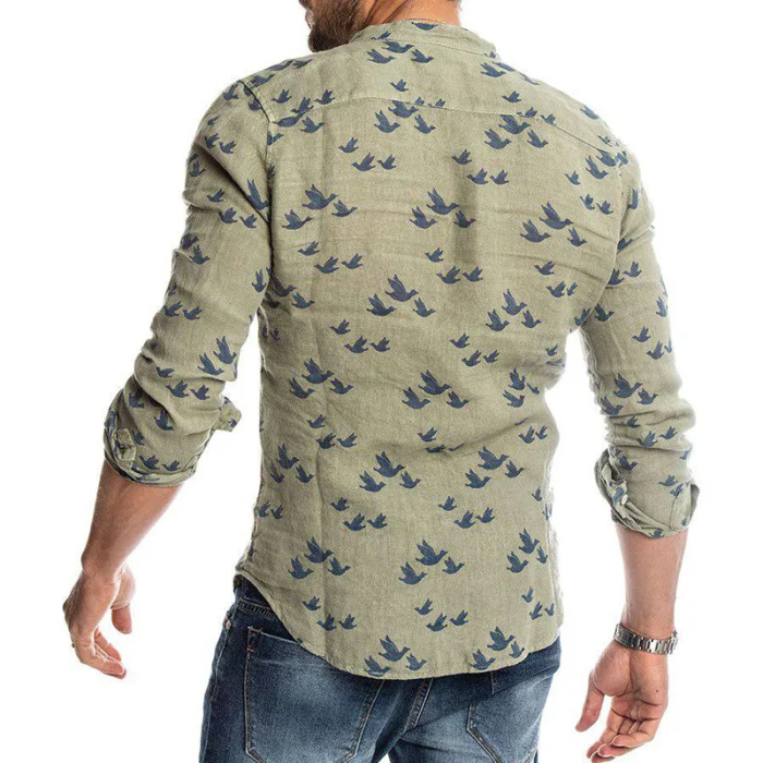Мужская модная льняная Футболка с принтом на пуговицах кардиган круглым вырезом - купить