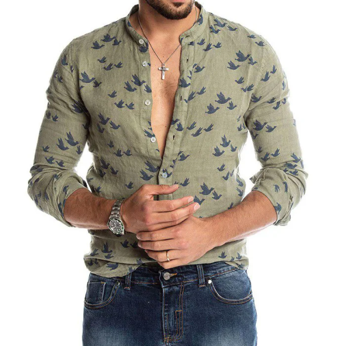 Отзывы о Мужская модная льняная Футболка с принтом на пуговицах кардиган круглым вырезом