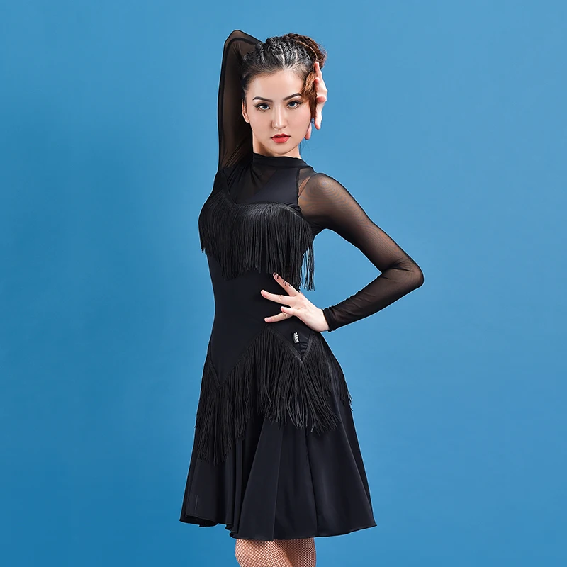 Купить Черное платье для латиноамериканских танцев соревнований женская одежда румбов