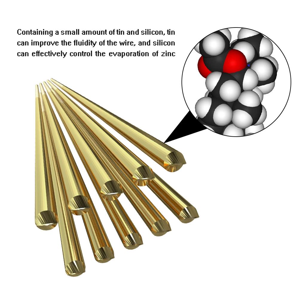 Содержит небольшое количество олова и кремния, олово может улучшить текучесть провода, а кремний может эффективно контролировать испарение цинка.
