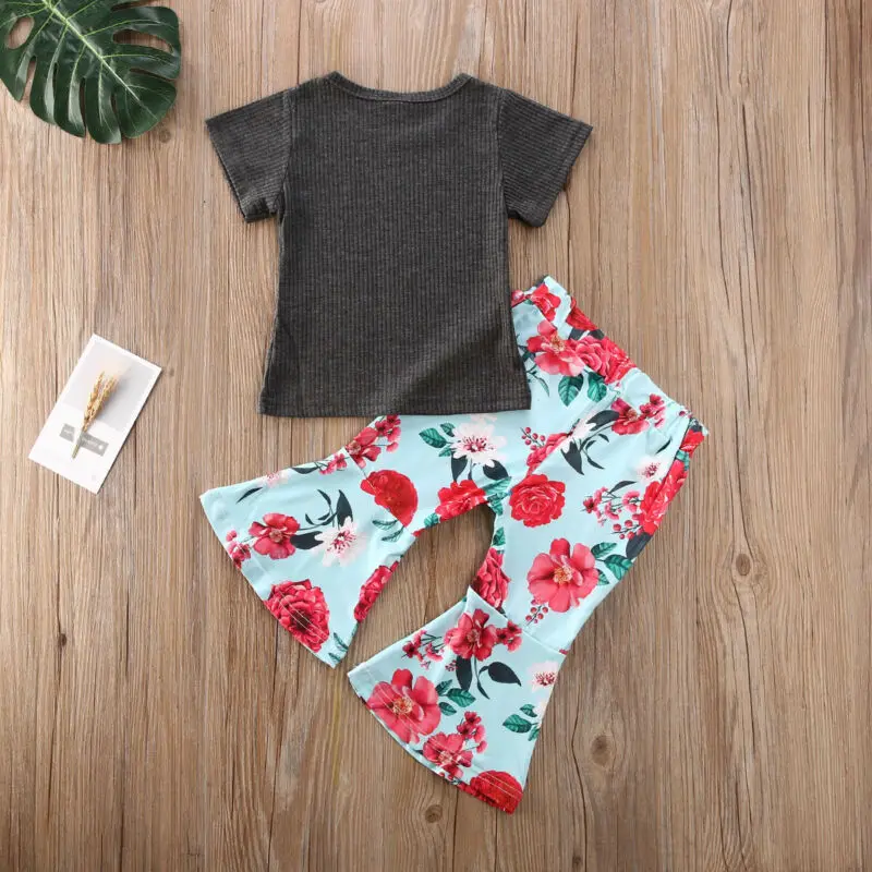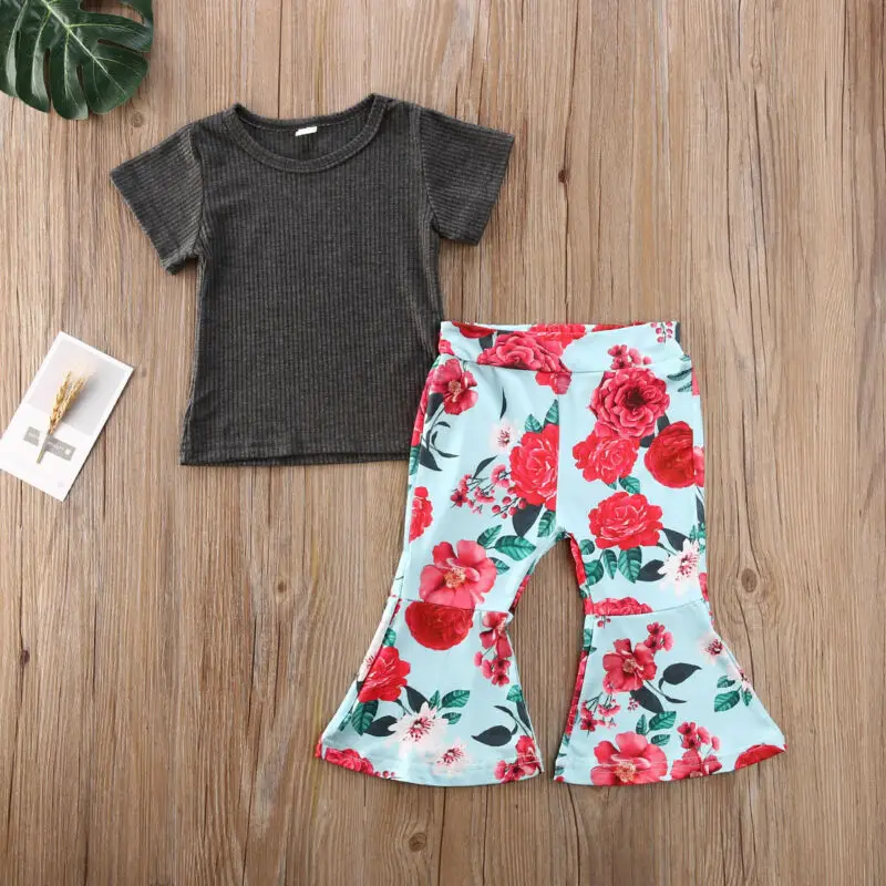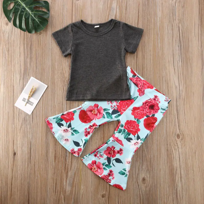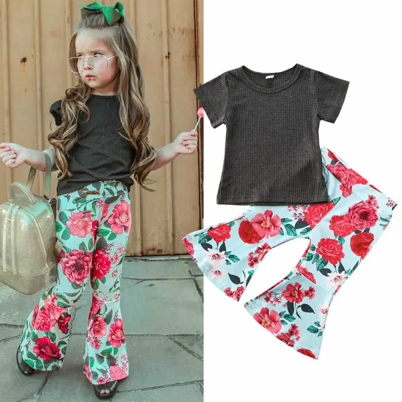 Купить Футболка с короткими рукавами для маленьких девочек топы брюки цветочным