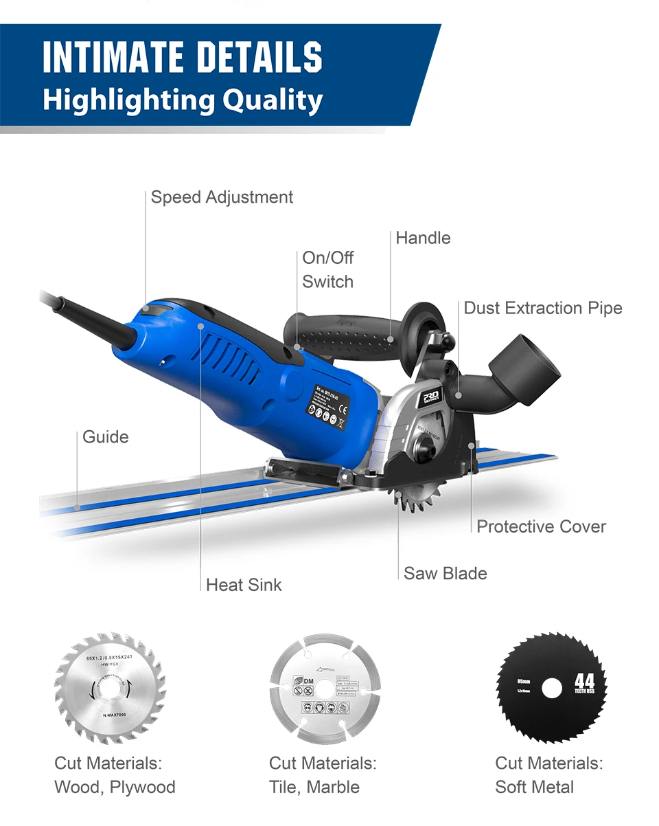 Отзывы о 500W Mini Circular Saw 220V Wood Cutter 3 Blades Adjustable Speed Electric Guide Rail DIY Power Tools by PROSTORMER Инструменты