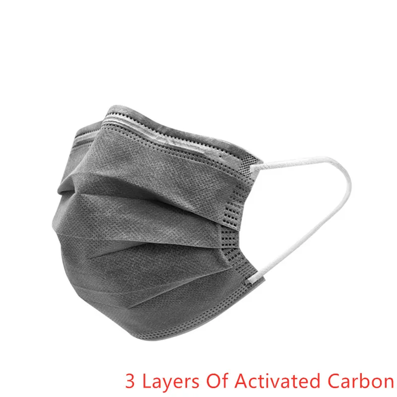 Купить 30 шт маска для рта Защитная защита от пыли 3 слоя активированного угля серый цвет