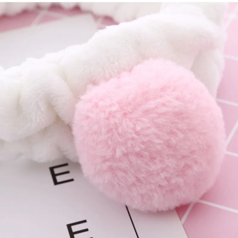 Оплетки для волос с кроличьими ушками 2020 New Fashion женщин и девочек Bow Wash Face Turban Makeup Elastic Hair Bands Coral Fleece Accessories on - купить