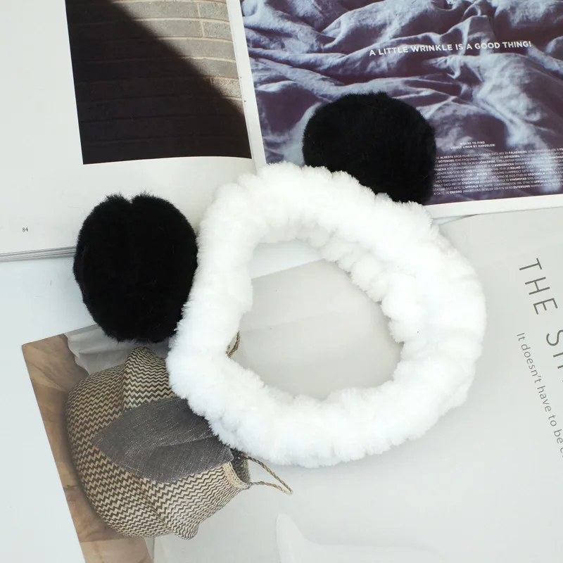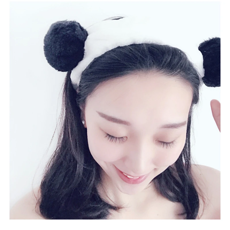 2020 New Fashion Panda Headbands for Women Girls Bow Wash Face Turban Makeup Elastic Hair Bands Coral Fleece Hair Accessories