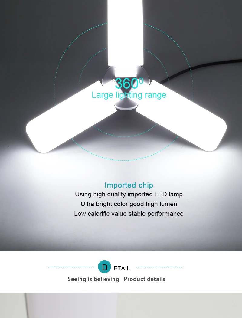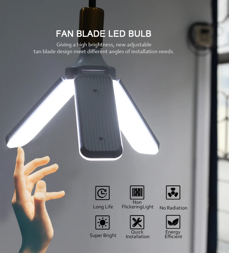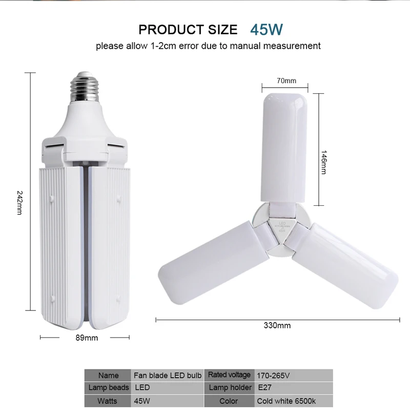E27 LED Bulb 45W AC 220V LED Lamp Foldable Fan Blade Bulb Super Bright For Indoor Home Angle Adjustable Lampada Led Light Bulb