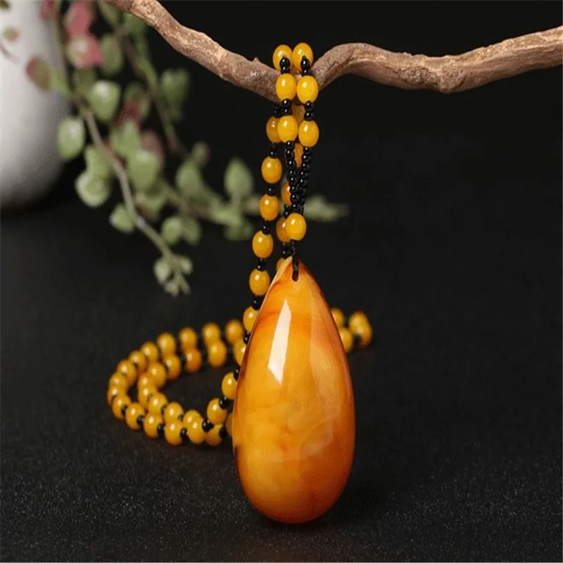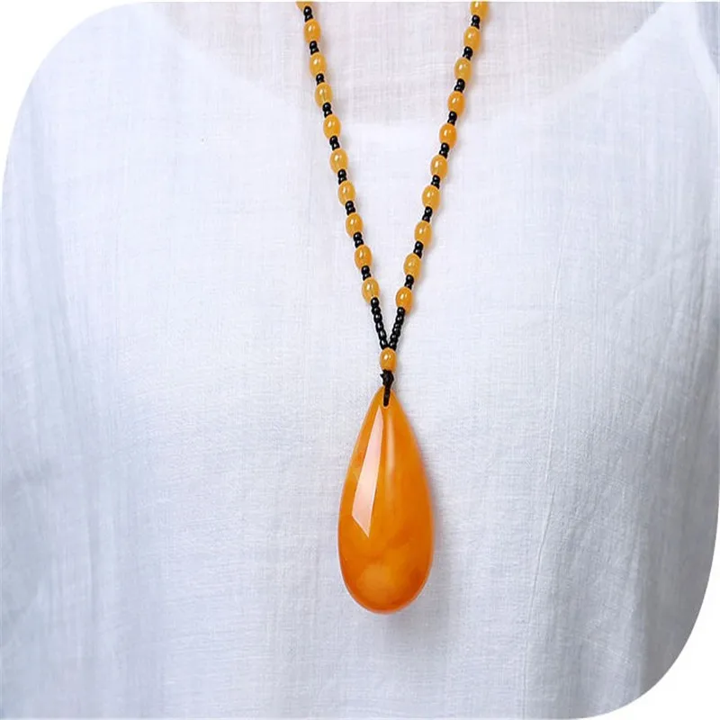 Женское длинное ожерелье подвеска в виде тыквы курицы масла янтаря национальном - купить