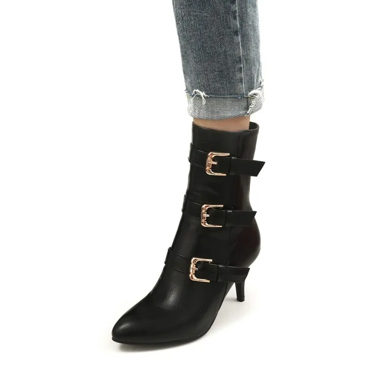 Отзывы о Ботинки женские с острым носком вельветовые полусапожки пряжкой и ремешком