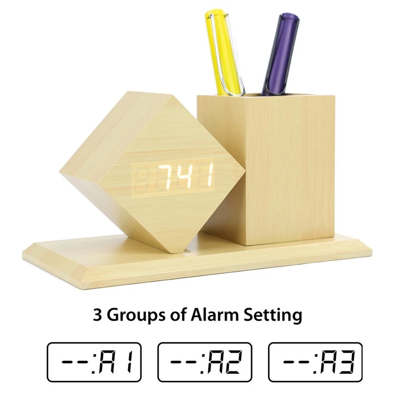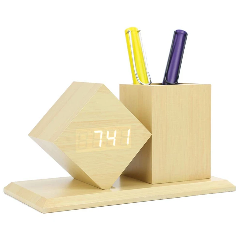 Деревянный будильник. Многофункциональный цифровой будильник с держателем ручки для офиса. Элегантный современный дизайн, компактный держатель для ручек, часы с деревянным зерном, идеальный подарок для ваших друзей. Будильник для тяжелого сна 3. Будильники. Вы можете установить их соответственно для встречи, сиесты. Он также может быть установлен в будние дни, поэтому вам не нужно беспокоиться о уютном утреннике в выходные дни.