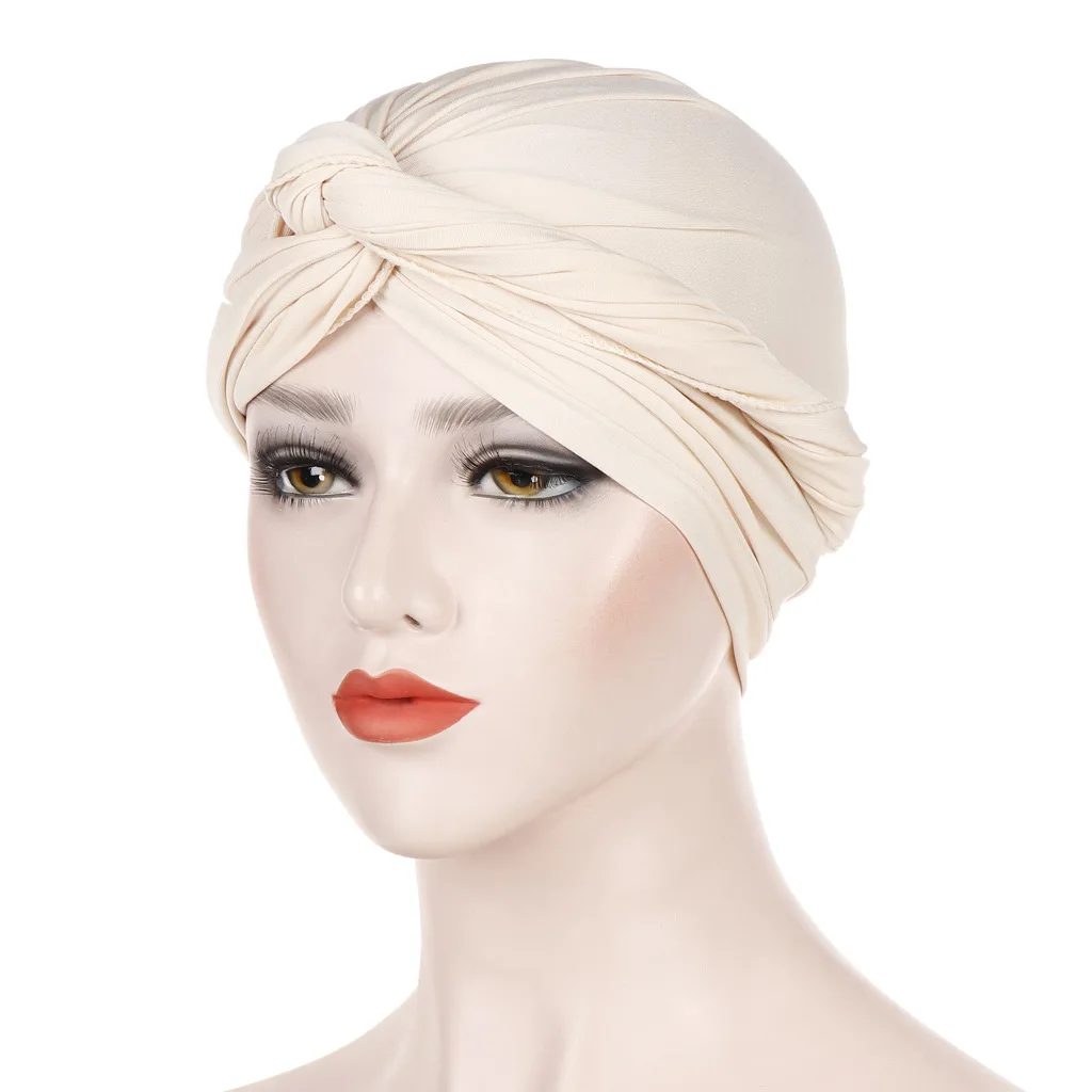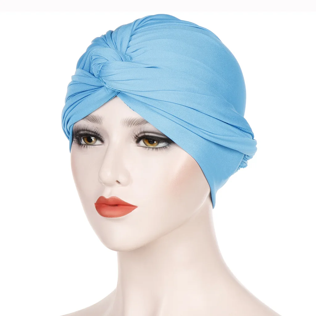 Отзывы о Индийская женская шапка-тюрбан с узлом однотонная Кепка-твист Chemo эластичная