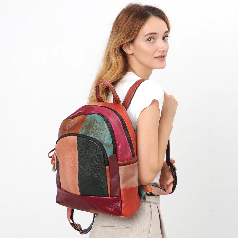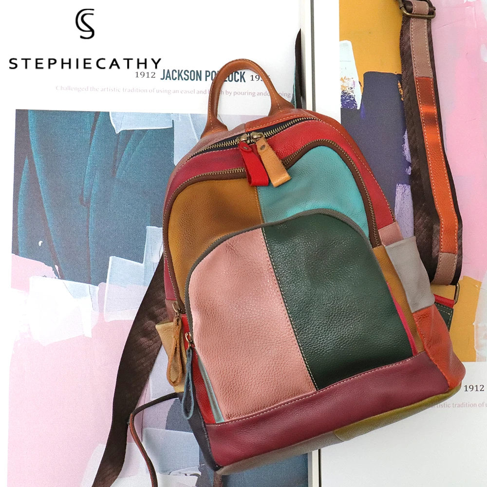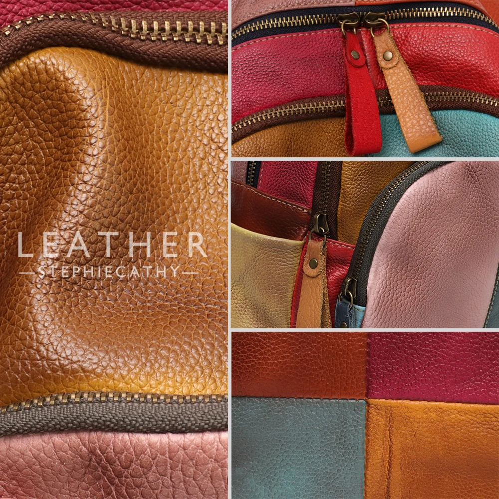 SC винтажный кожаный цветной лоскутный женский рюкзак на молнии повседневные - купить