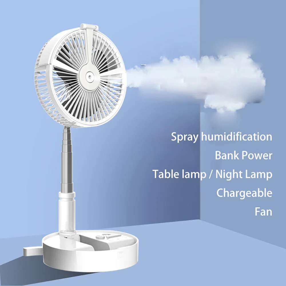 Портативный складной телескопический вентилятор, зарядка через USB, мини-напольный электрический вентилятор, четвертая передача, регулируемая настольная лампа, пополнение увлажнения, распылитель