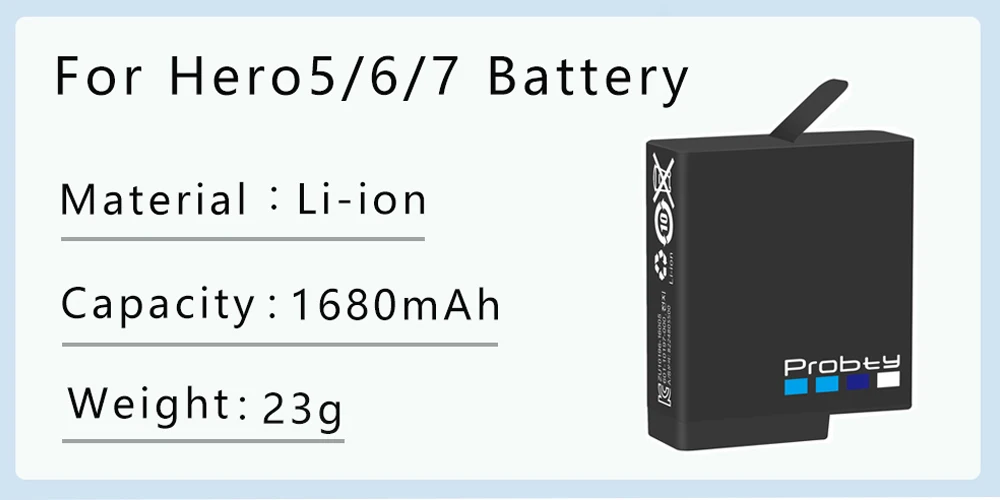 Probty для GoPro Hero 7 6 5 аккумулятор 1680 мАч + тройное Зарядное устройство USB Type C черные - купить