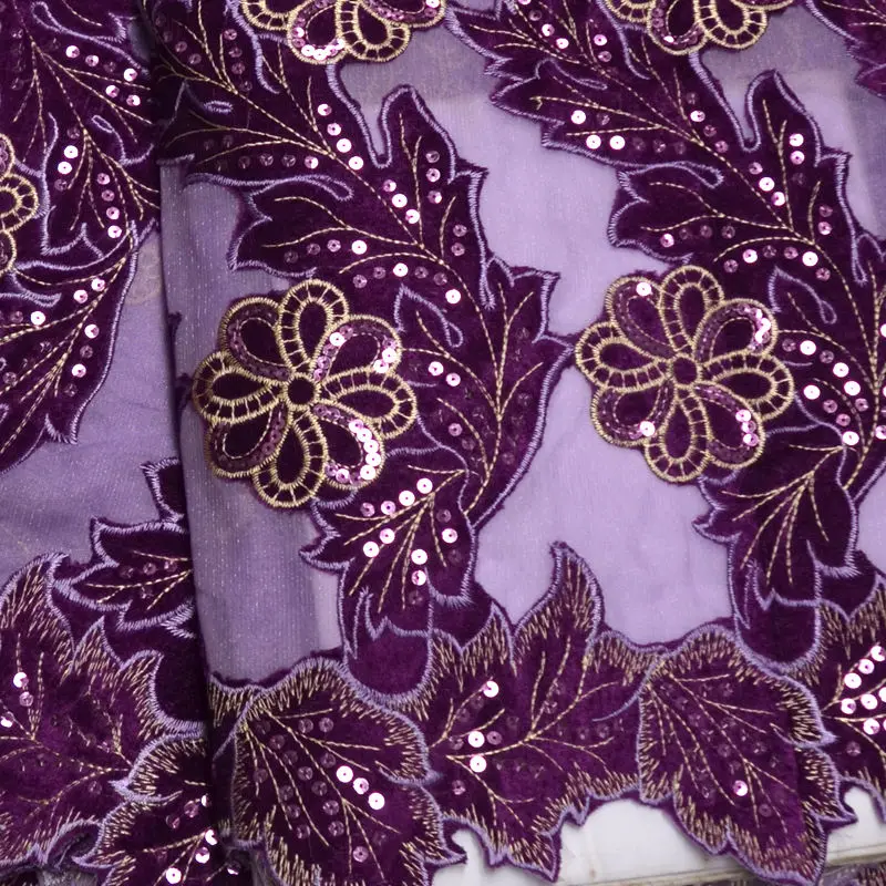 5 ярдов вышитая бархатная кружевная ткань с блестками Красивая и модная сиреневая африканская французская фатиновая кружевная ткань