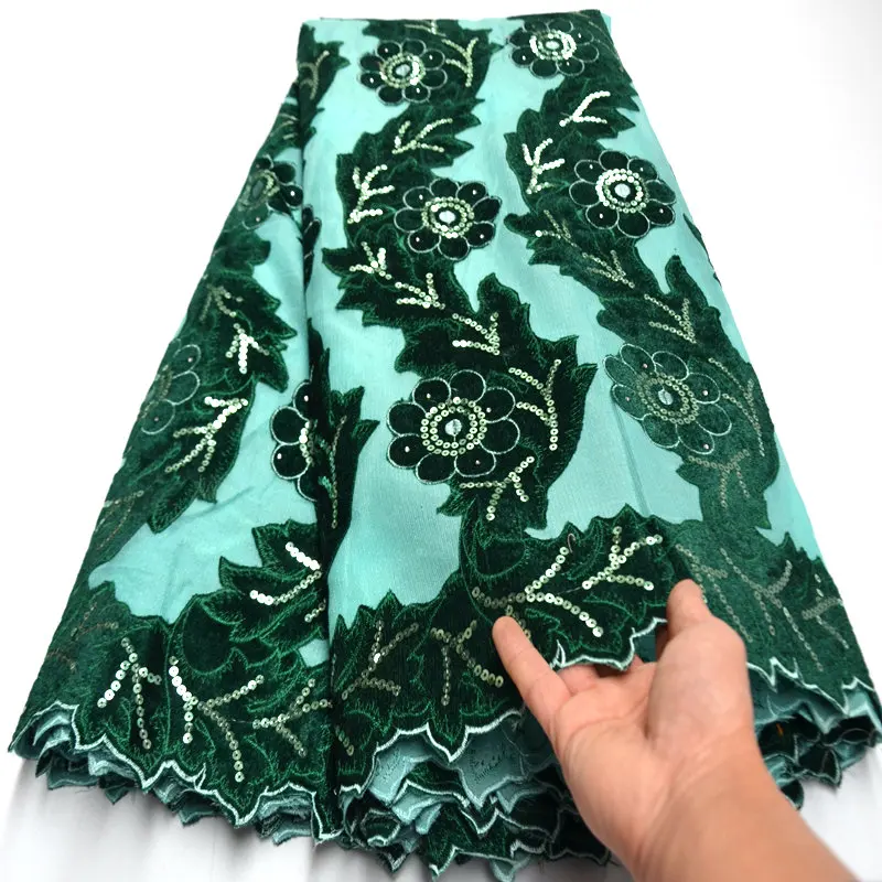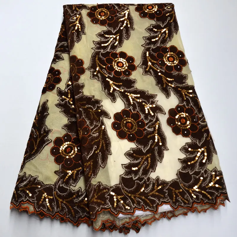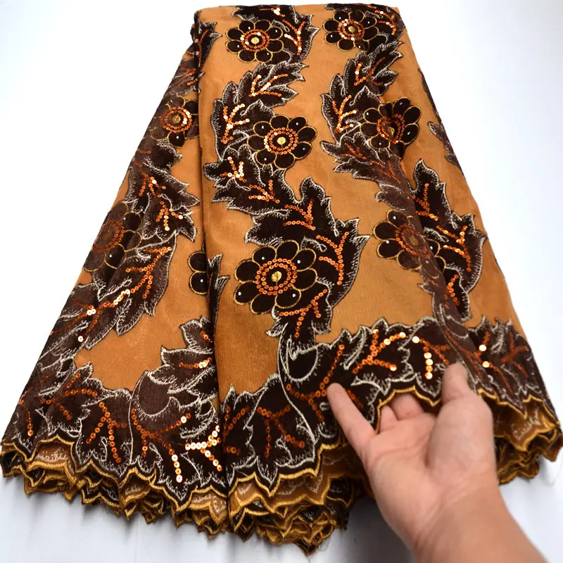 5 ярдов вышитая бархатная кружевная ткань с блестками Красивая и модная - купить