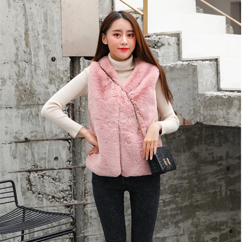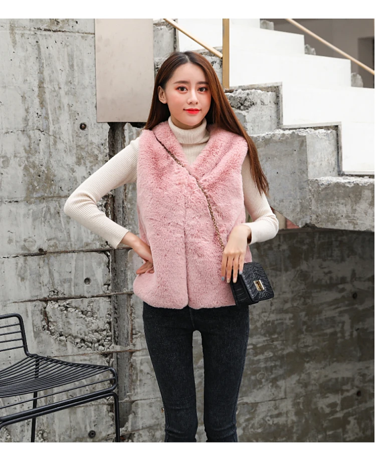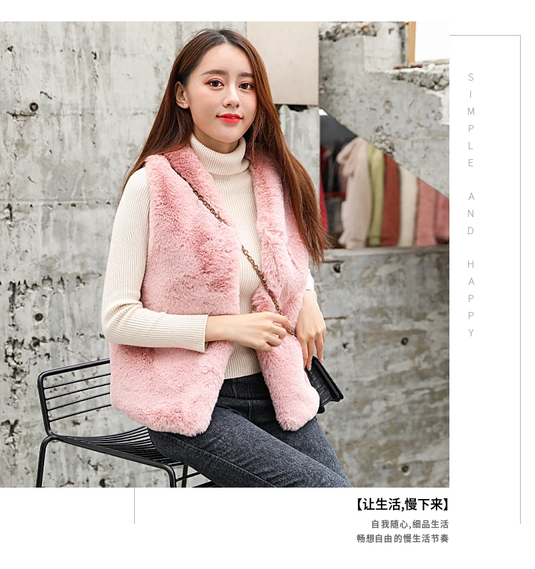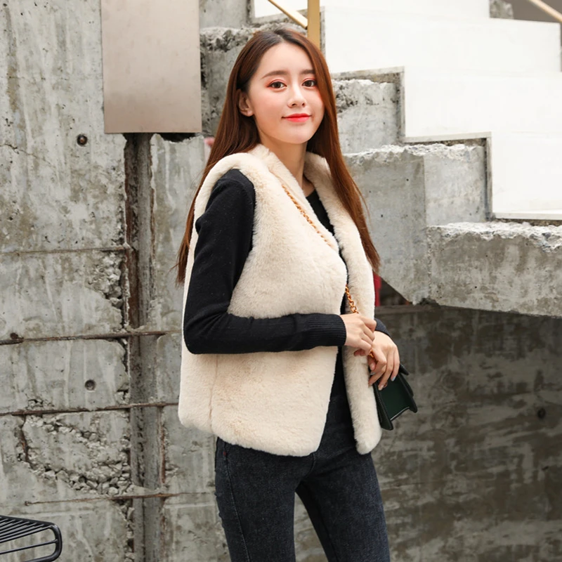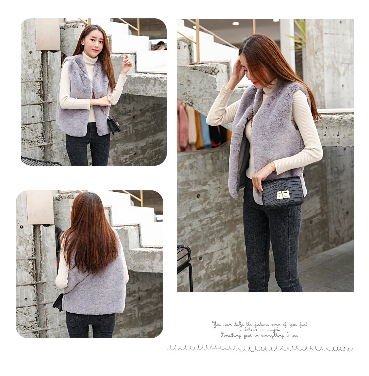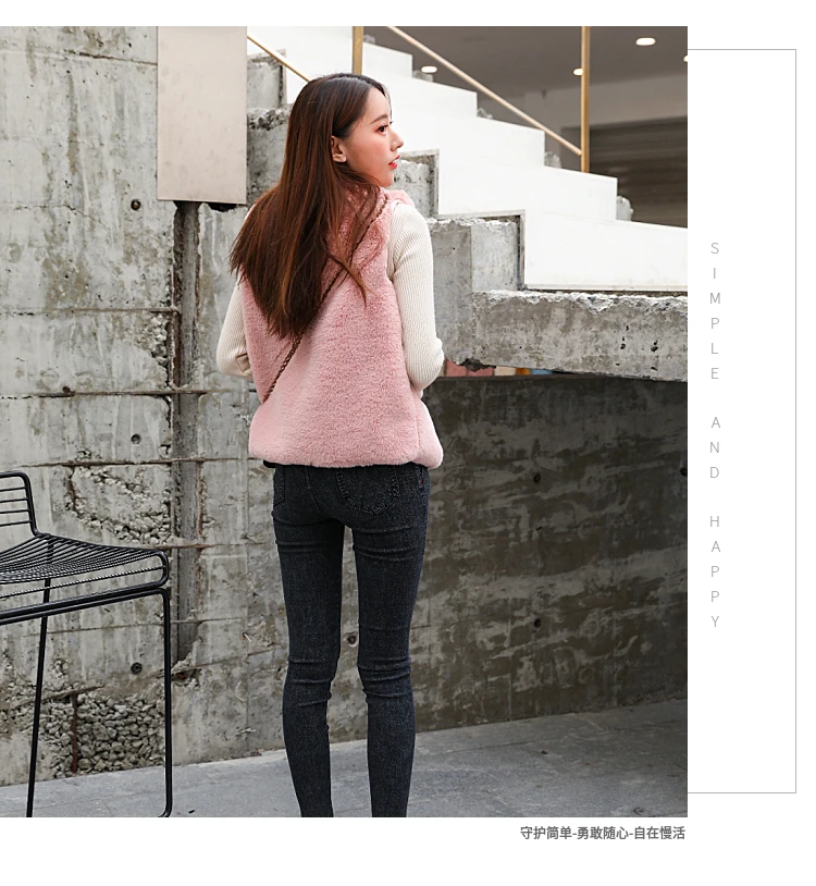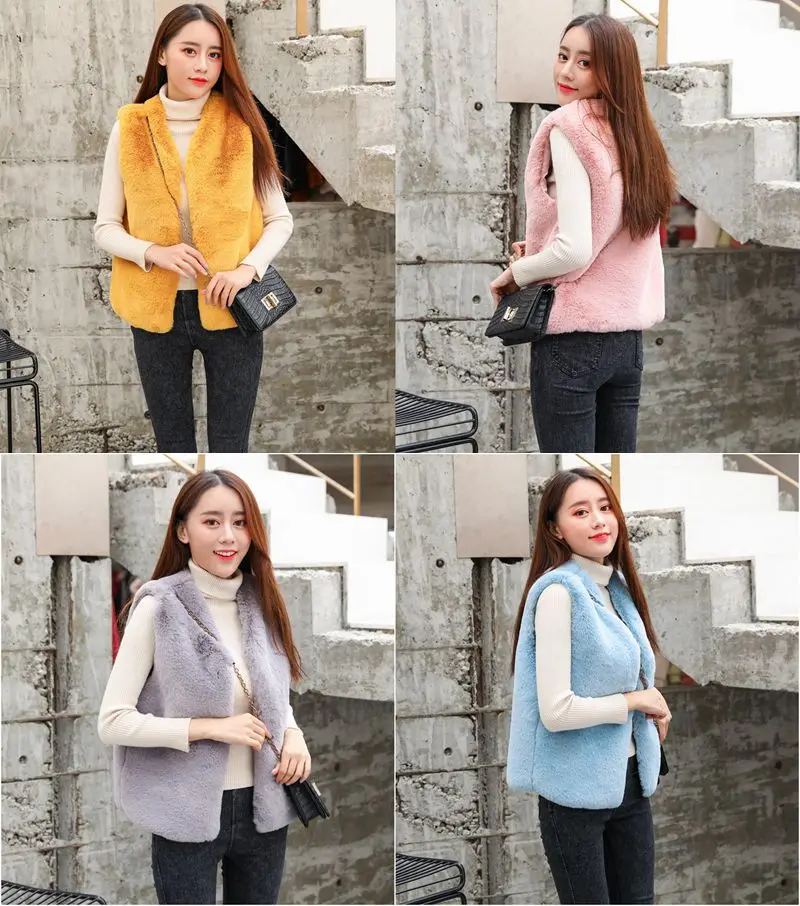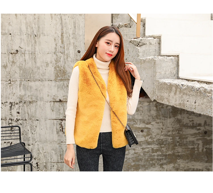Женский осенне-зимний новый однотонный короткий жилет пальто с мехом женское - купить