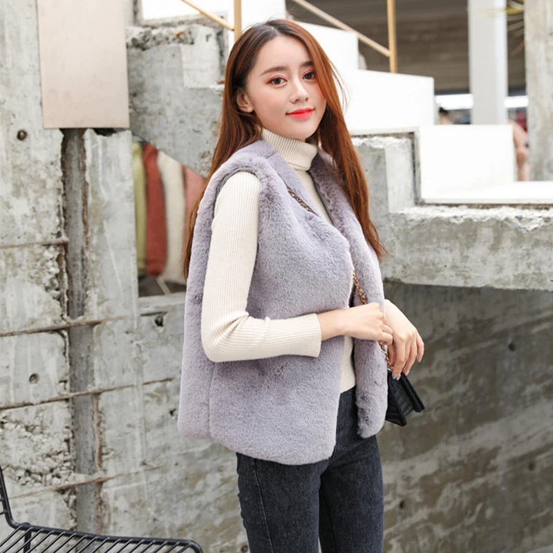 Купить Женский осенне-зимний новый однотонный короткий жилет пальто с мехом женское