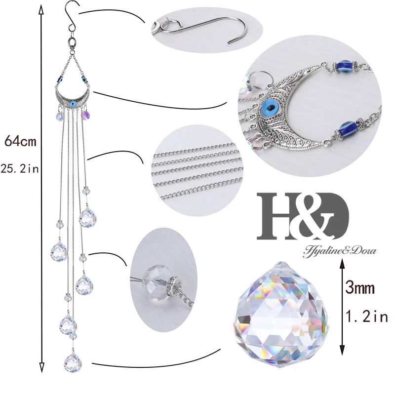 Название продукта:H & D синий сглаза Хрустальный Ловец снов полумесяц Радуга производитель с хрустальным шариком домашнее окно висячие орнамент декор для сада