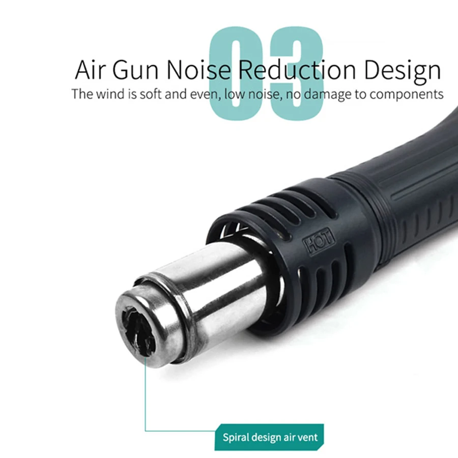 1. 2008 Воздушный пистолет и 936A паяльник в сочетании 2. Воздушный пистолет может автоматически спать на полке 3. Калибровка температуры 4. Энкодер регулировки 5. Крутой внешний вид Hight technology 6. Большой экран COG, тонкий и легкий, низкое энергопотребление 7. Небольшая разница температур (плюс или минус 5 градусов)