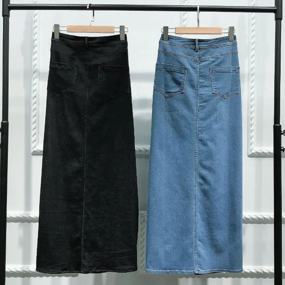 Название: длинная джинсовая юбка, эластичная женская джинсовая юбка, лето 2021, мусульманская высокая талия, однотонные вечерние Облегающие юбки