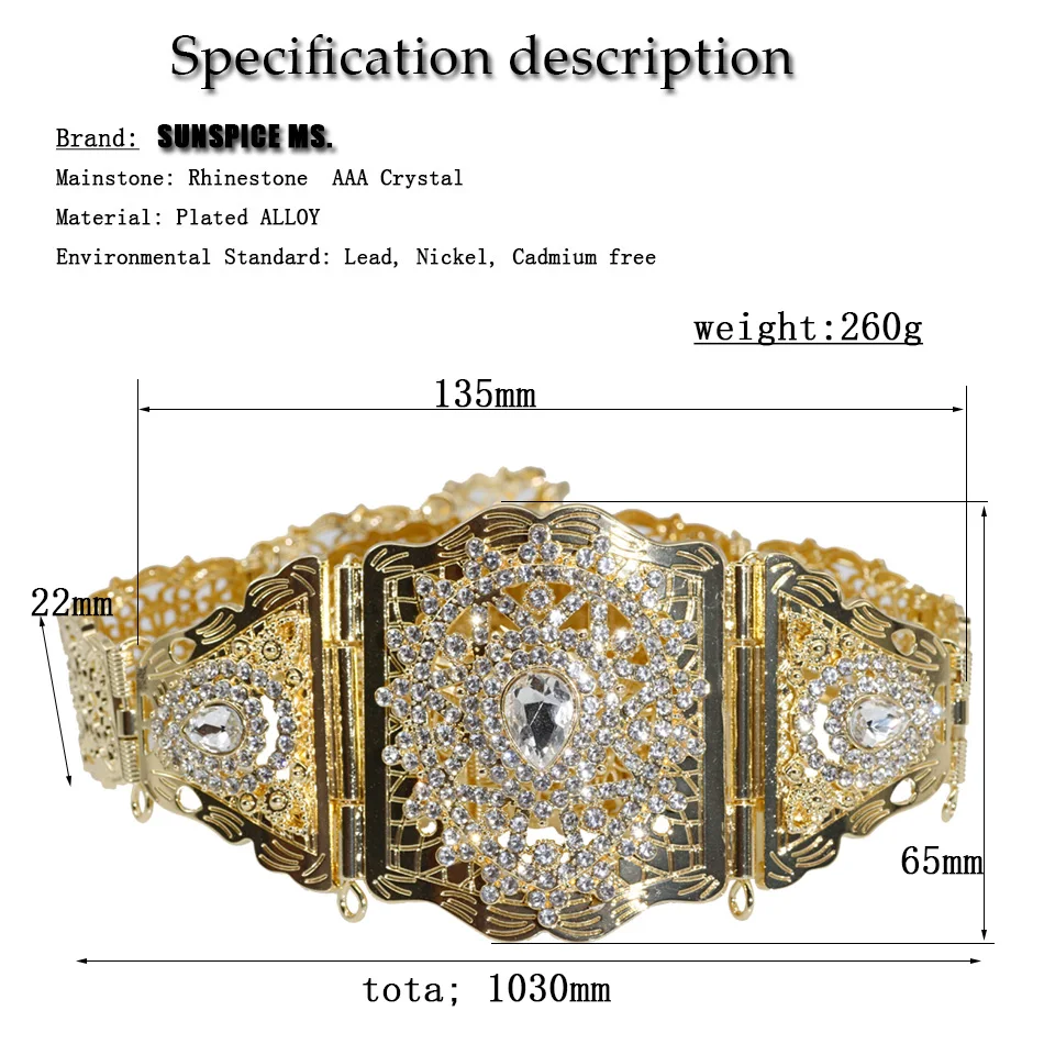 NEOVISSON 2021 Morocco Rhinestone Caftan Belt For Women Algeria Wedding Dress Robe Gold Silver Color Waist Jewelry Украшения и - купить