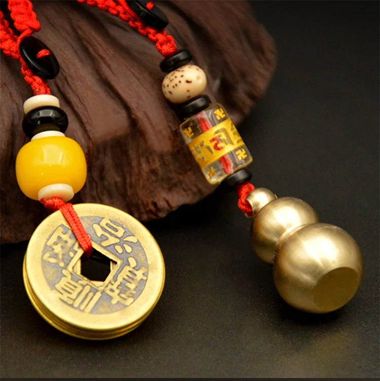 Отзывы о Fengshui Five emperor money lucky key pendant copper gourd pure small Дом и сад