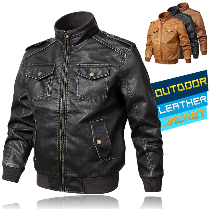 Отзывы о Мужская мотоциклетная кожаная куртка на весну и осень Байкерская верхняя одежда