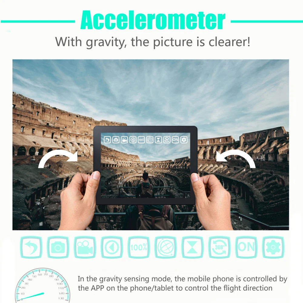 Функции: боковой полет/поворот влево/вправо, вверх/вниз, вперед/назад/3D опрокидывание/WIFI FPV/контроль гравитации/Безголовый режим/удержание высоты