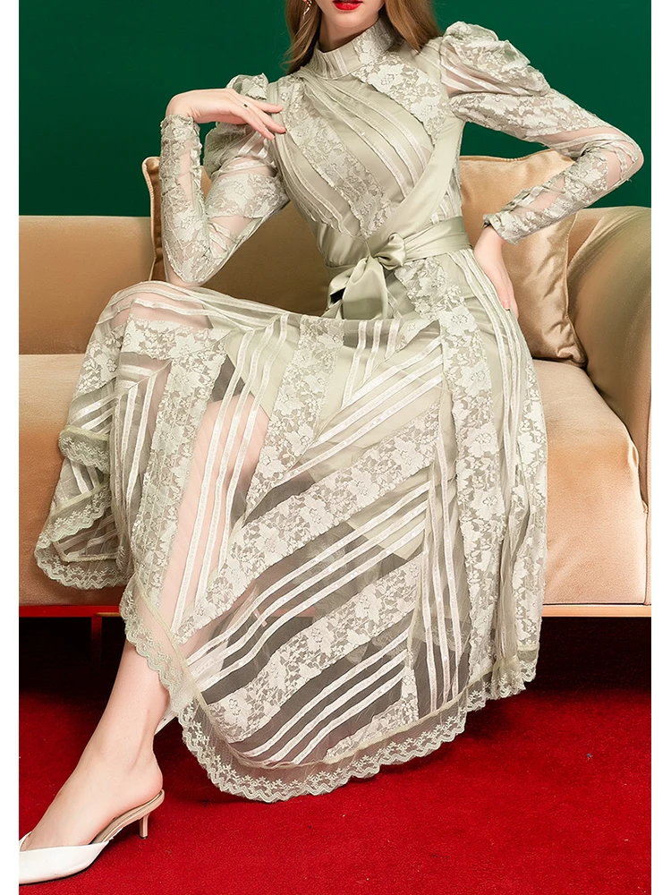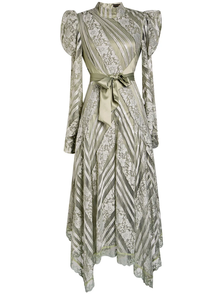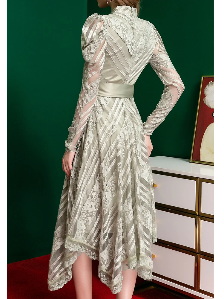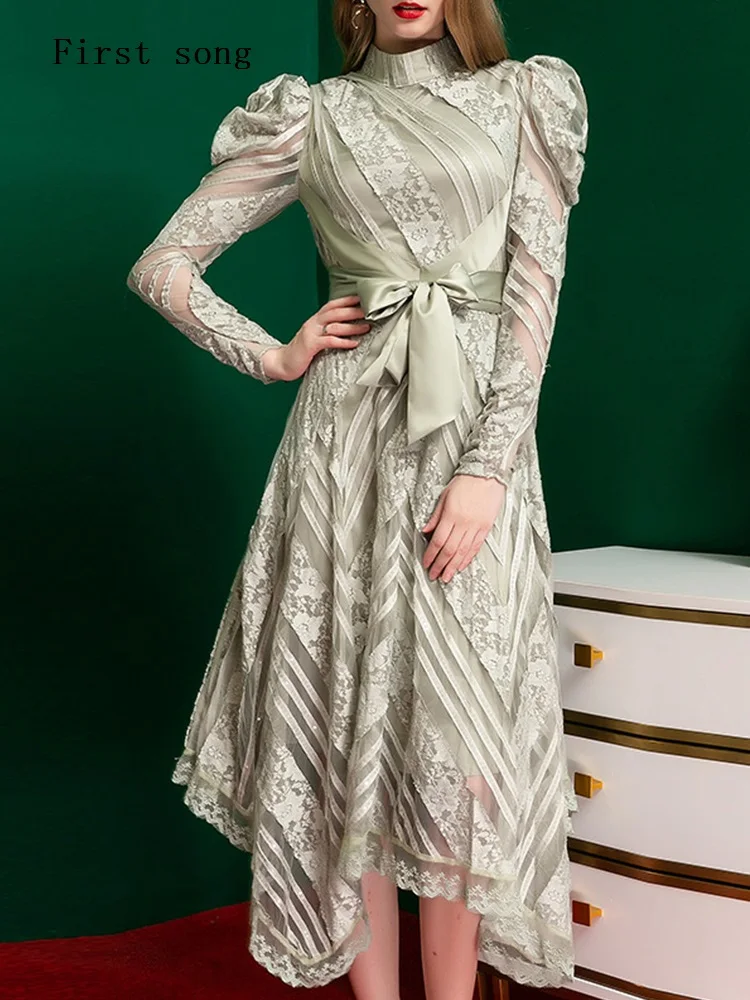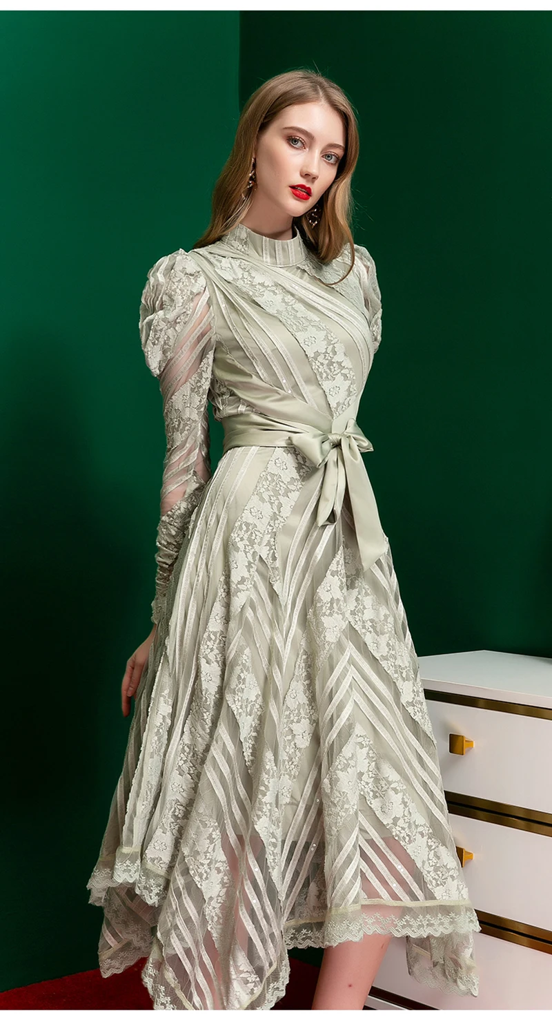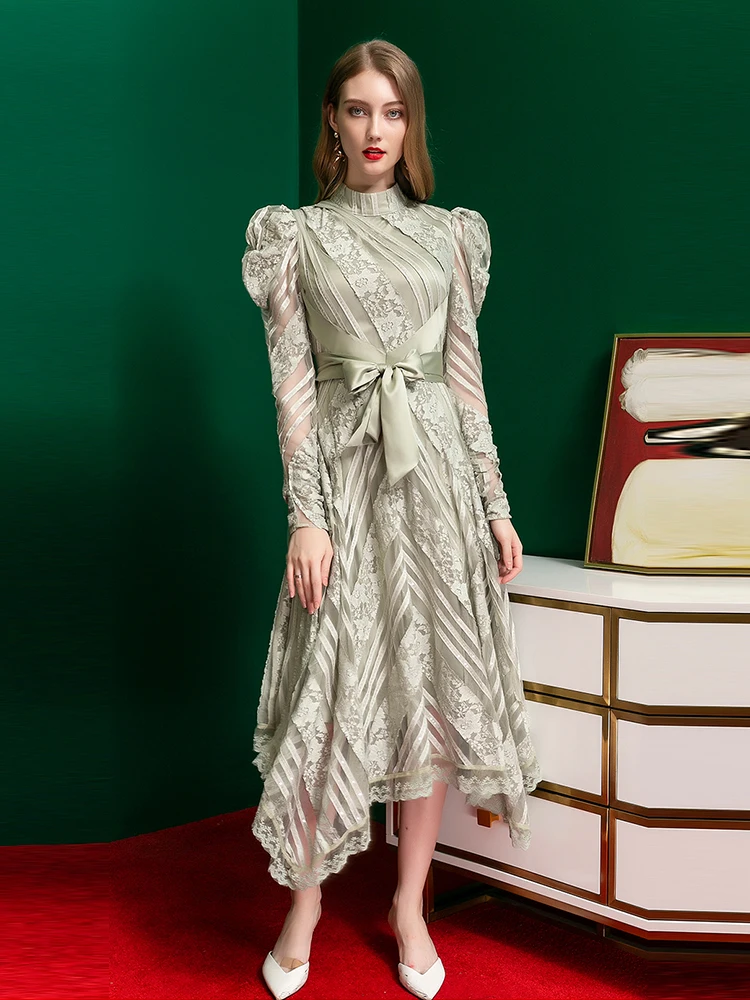 Купить Французское Сетчатое платье с вышивкой и бантом на поясе женское асимметричное