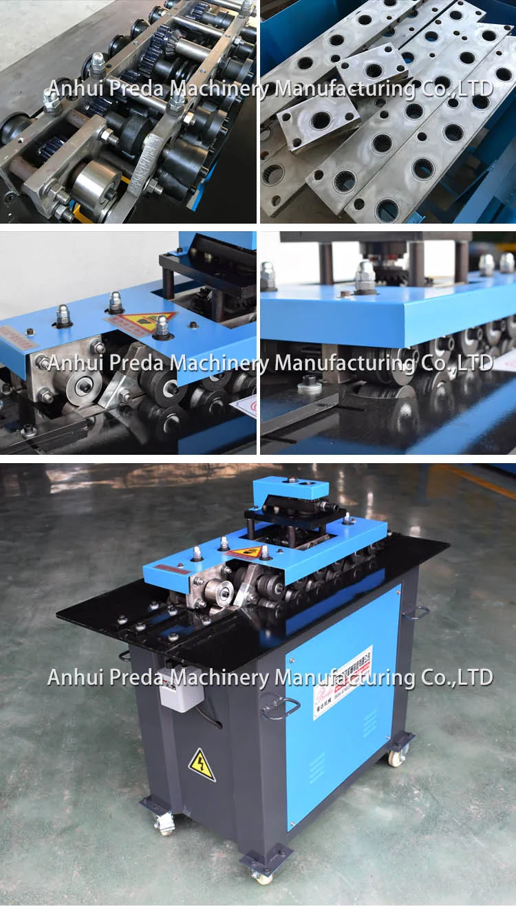 1) Small and mobile machine. 2) Only one person can operate, it don't need a lot of people to operate. 3) More functions, suitable for the HVAC duct production requirements. 4) The machine is widely used, and one machine can be used for many years. 5) Suitable for 0.5-1.2/1.5mm galvanized steel coil, can be successful at one time.