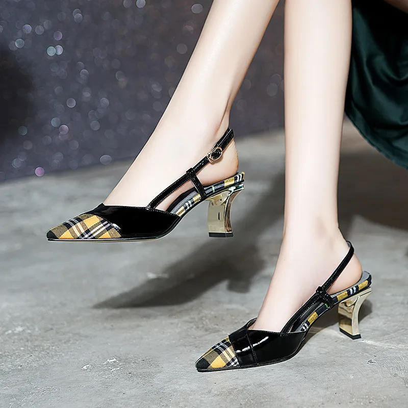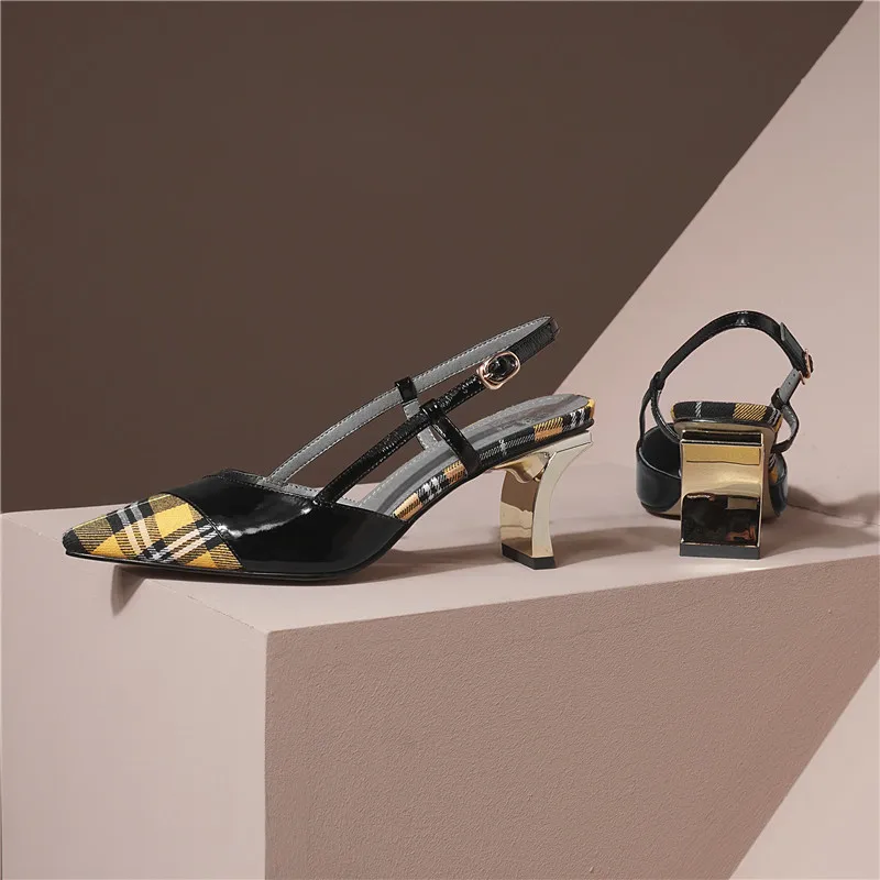 Женские босоножки с острым носком FEDONAS черные из натуральной кожи на высоких - купить
