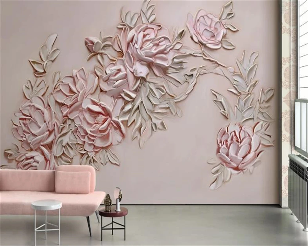 Настенные бумаги домашний декор 3d Трехмерная розовая тисненая картина маслом в - купить