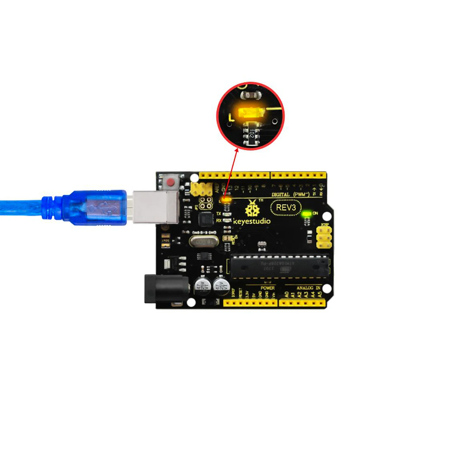 Купить Макетная плата Keyestudio REV3 ATmega328P + usb-кабель для Arduino UNOR3 | Электронные компоненты и