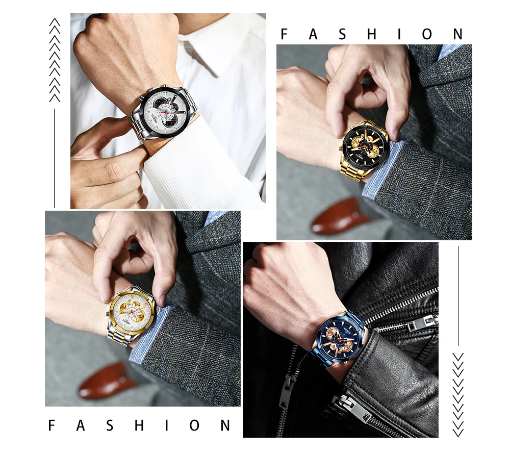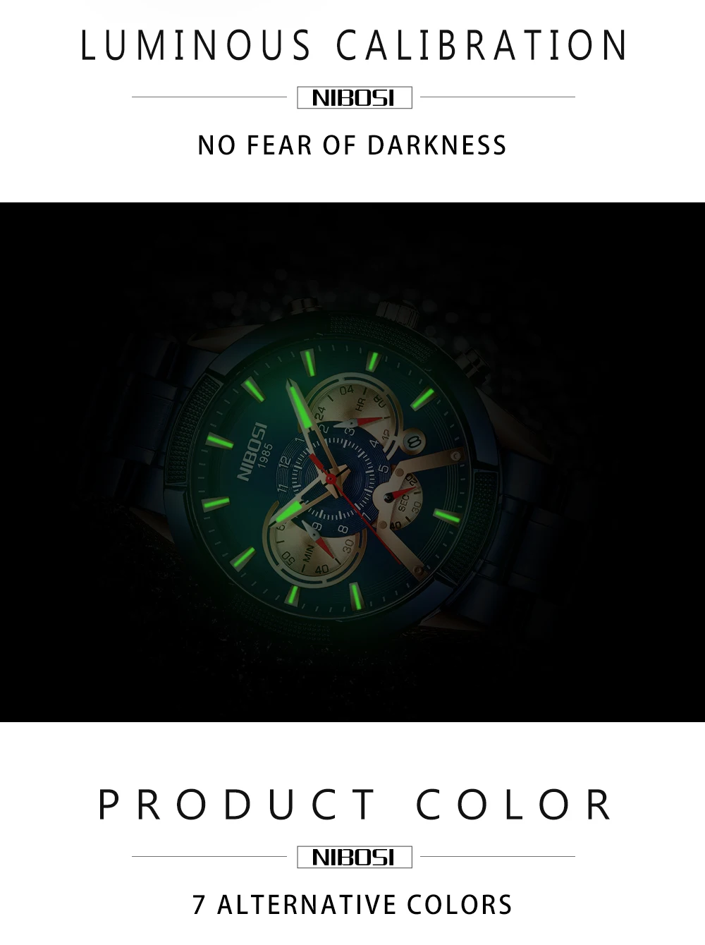 Часы наручные NIBOSI Мужские кварцевые спортивные брендовые Роскошные - купить