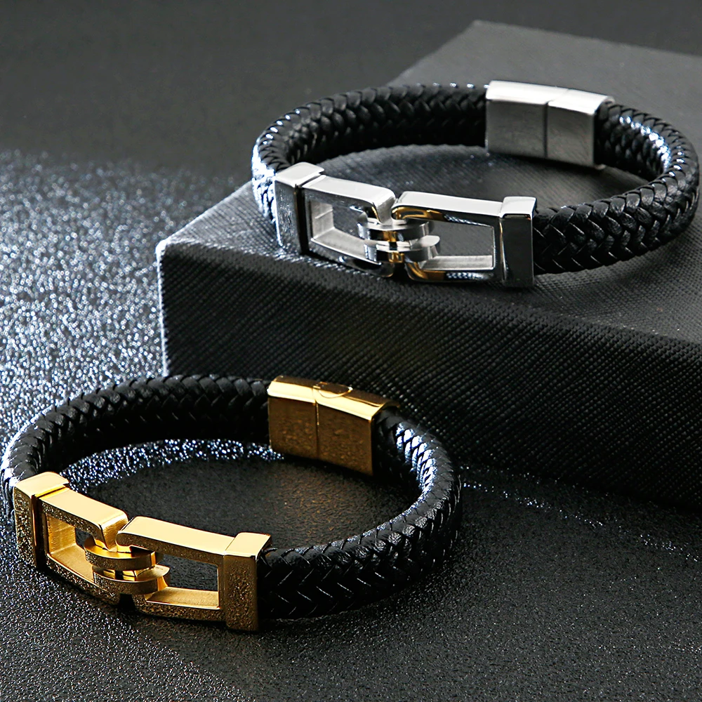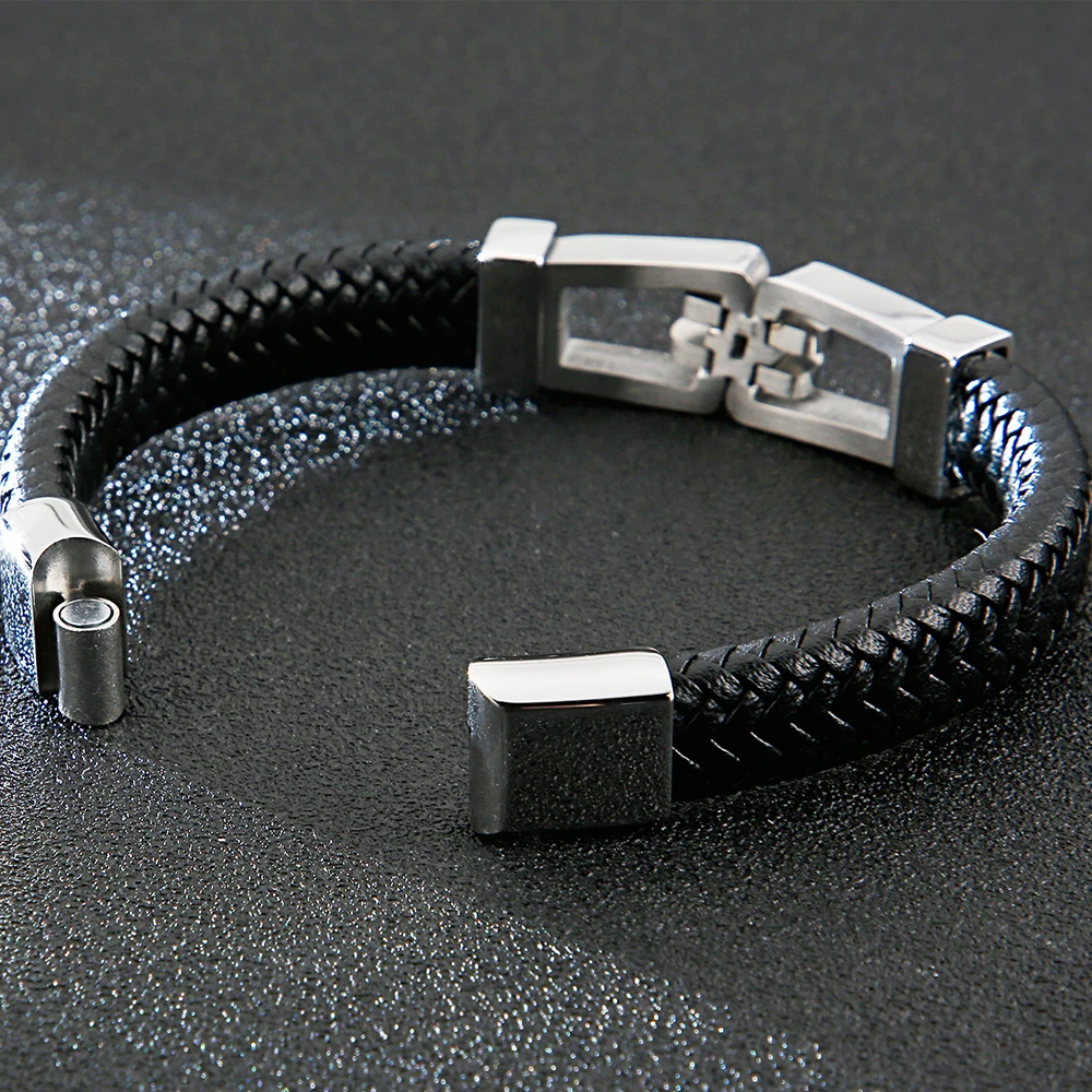 Купить Мужской кожаный браслет ручной работы для мужчин с магнитной застежкой из