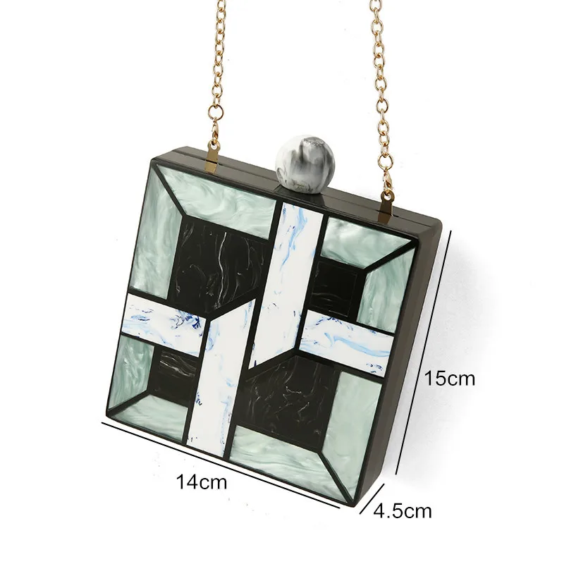 Купить Сумка-кошелек женская акриловая зеленая золотая квадратная | Багаж и сумки