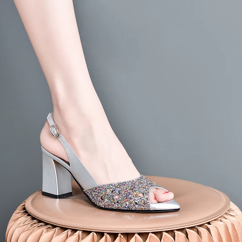 Женские босоножки с открытым носком FEDONAS черные из натуральной кожи на высоких - купить
