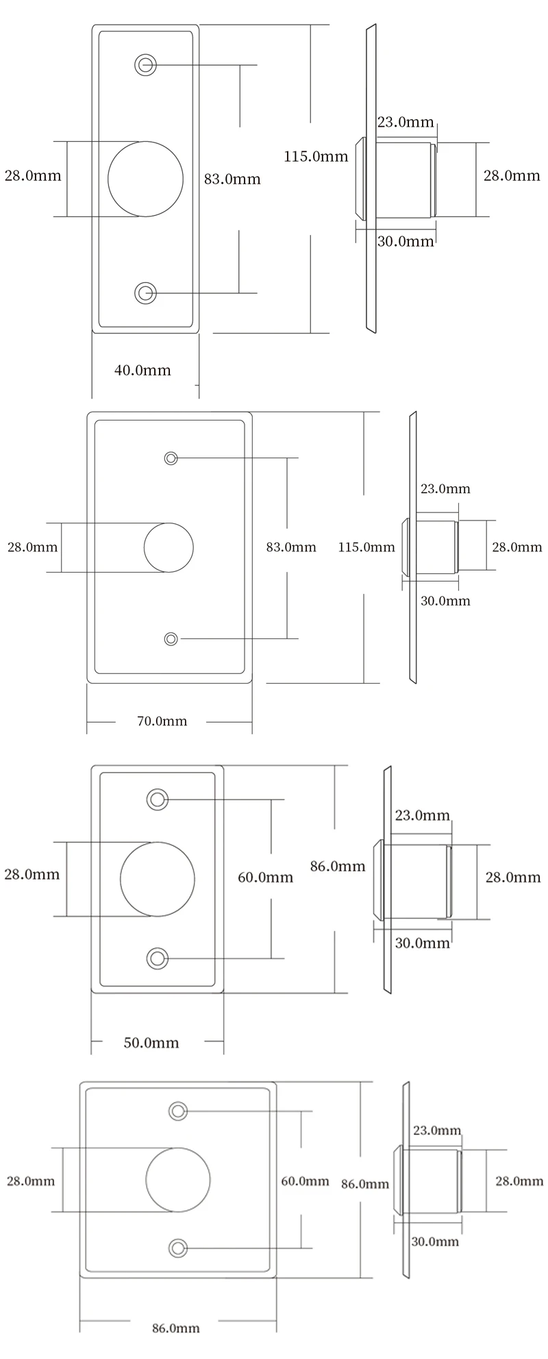 8. Размеры: 115*70x30 (мм) / 115*40*30 мм/86*50*30 мм/86*86*30 мм