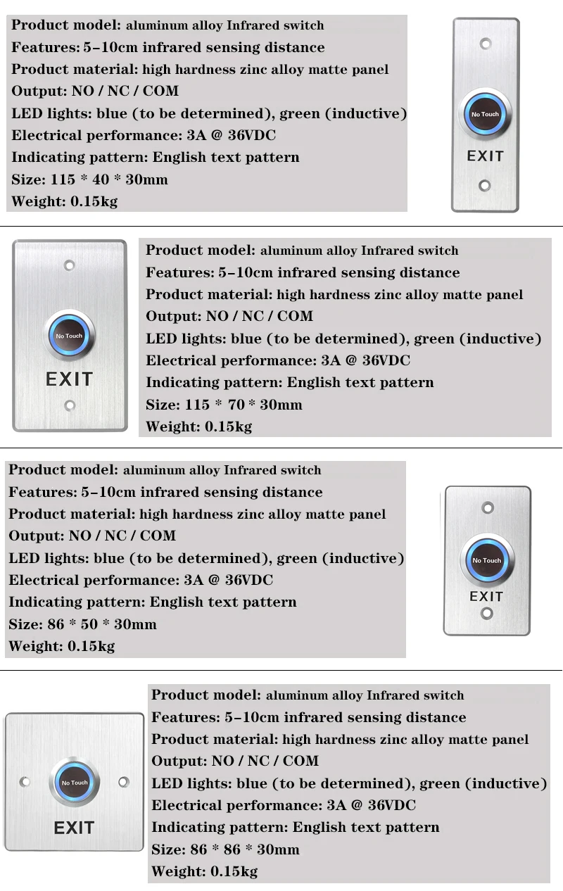 Кнопки открывания дверей являются наиболее распространенными и часто используются в системах контроля доступа. Они часто используются в государственных службах, банках, крупных, малых и средних предприятиях, универмагах и жилых домах.