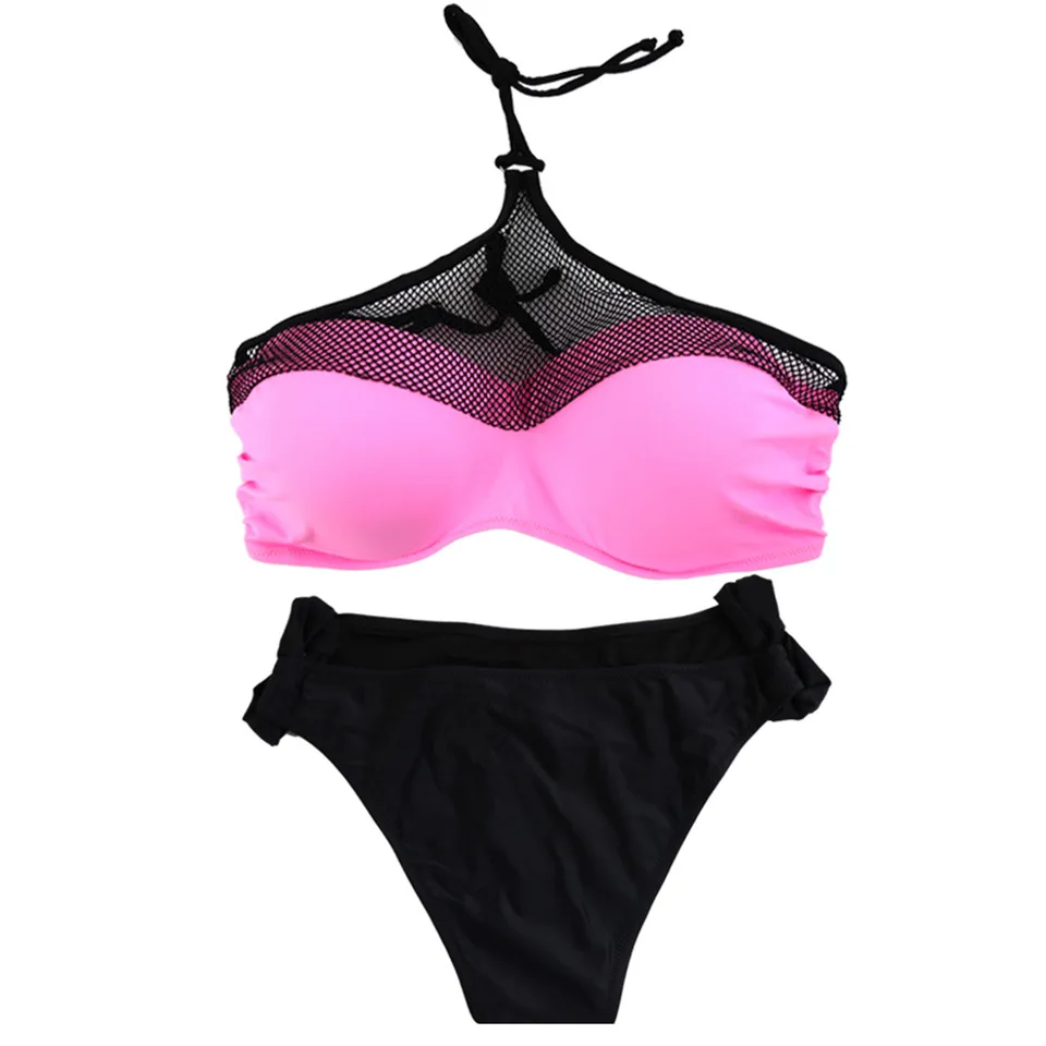 ОписаниеFWMS сексуальные бикини-танга пуш-ап купальные костюмы для женщин бандажные Лоскутные Бикини Набор размера плюс XL XXL купальник Черная пляжная одежда