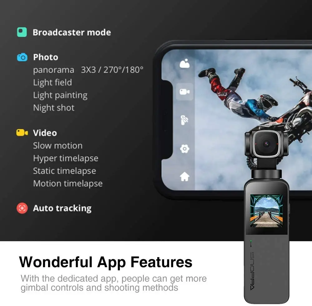 3-осевой шарнирный стабилизатор Snoppa Vmate с 4K умной камерой, 118 ГГц, Wi-Fi соединение, встроенный микрофон, вращающийся на 90 ° объектив, поддержка Bluetooth-микрофона