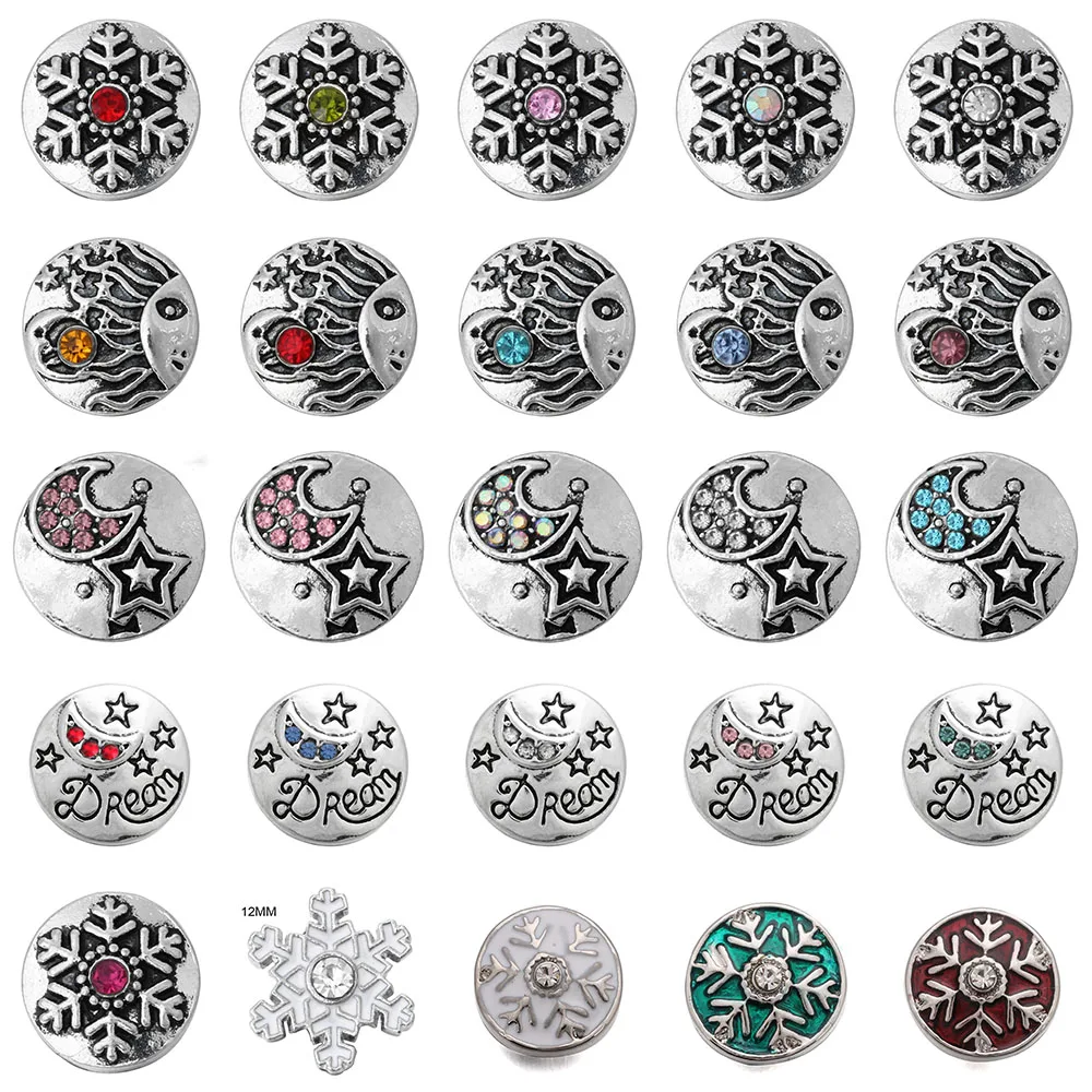 10 шт./лот Новые 12 мм кнопки ювелирные изделия со стразами Снежинка Луна мини - купить