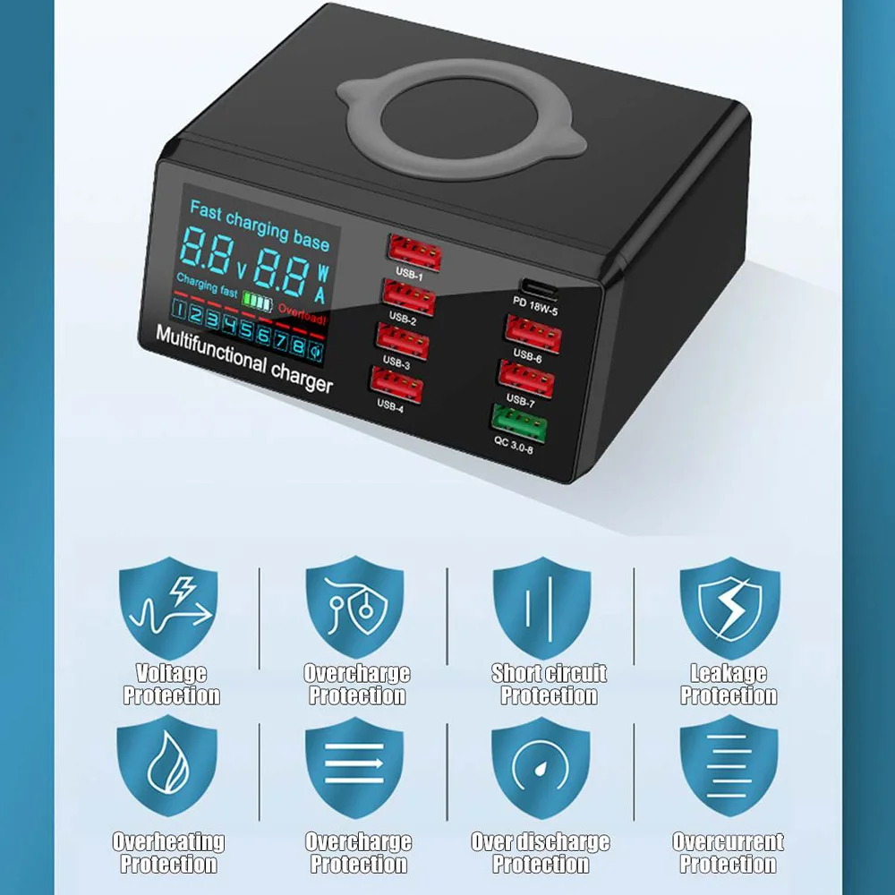 Отзывы о 100 Вт PD QC 3.0 Подставка для быстрого зарядного устройства Multi USB HUB Светодиодный