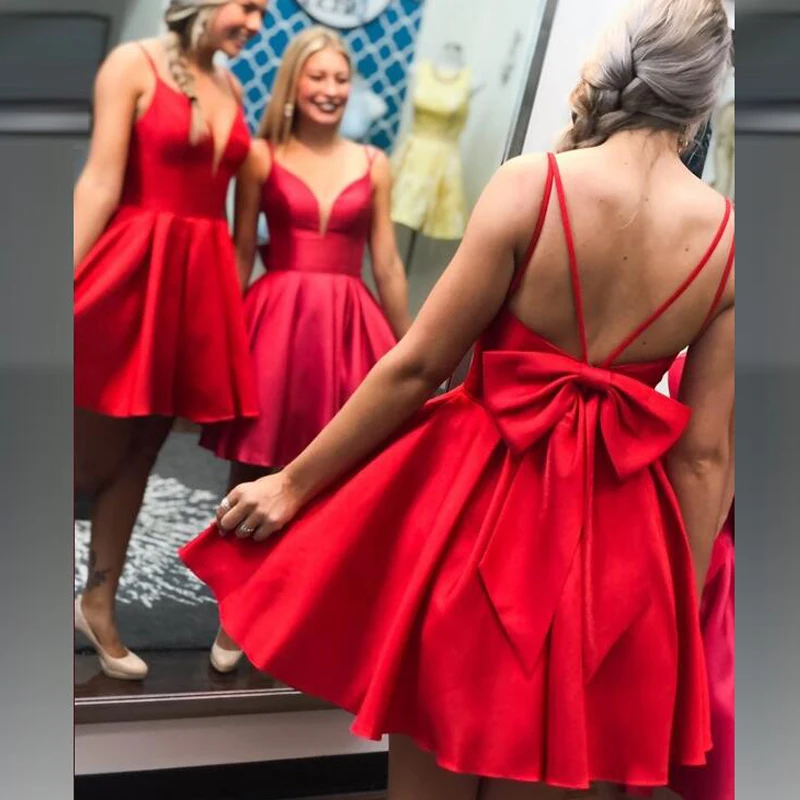 Красное Атласное короткое платье для встречи выпускников а-силуэт дешевые - купить
