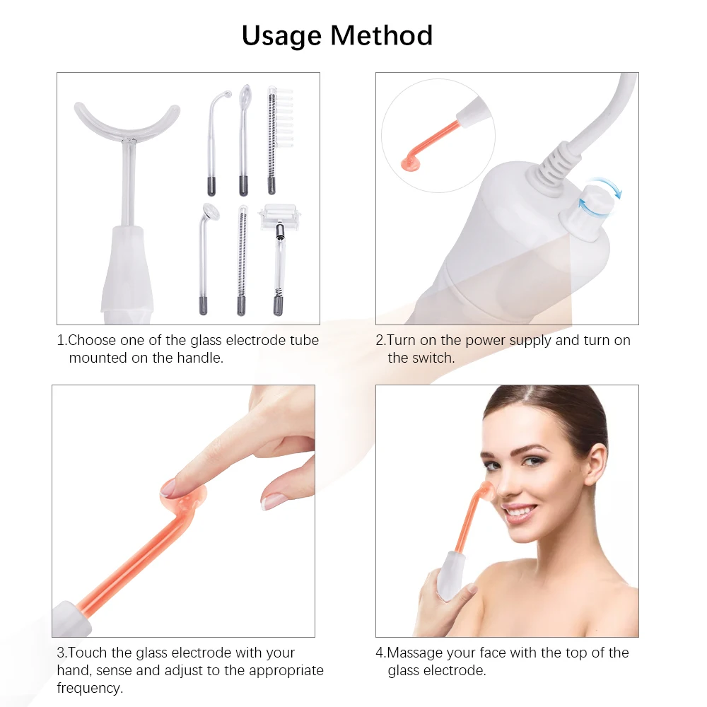 Портативный Высокочастотный фиолетовый светильник для удаления прыщей и пятен массажер для лица массажное устройство для ухода за кожей лица спа Принцип работы Высокочастотная элетротерапия является важным инструментом красоты. Это через стеклянную электродную трубку для получения высокочастотного тока и нанесения на лицо или тело, таким образом, достигает результата обработки. Функции: 1. Помогает успокоить нерв и функцию анальгезии 2. Прокалывайте Озон для стерилизации, помойте рану заживлять и удерживать поры. 3. Улучшает секрецию, рН-значение, вызывает раздражение кожи. 4. Ускоряет кровообращение и улучшает обмен веществ. 5. Против старения, против морщин, затягивает кожу. Спецификация: Напряжение: 110-240 В Частота: 50-60 Гц Мощность: 10 Вт Светильник; Цвет: фиолетовый Особенности: * Удалите место * Заживляет шрамы кожи * Улучшает кровообращение * Улучшение лимфатической активности * Помогает питанию кожи * Укрепление метаболизма клеток * Улучшает секрецию и значение PH * Уменьшает воспаление * Стерилизовать бактерии * Ускоряет заживление ран * Уменьшает видимые поры кожи 7 в 1 Высокочастотный электрод стеклянная трубка Трубка для языка Для кожи лица, сумки для глаз, носа Лучший терапевтический эффект Модель Y Tube Подходит для шеи, рук и частей тела Загибающаяся трубка Подходит для деталей, таких как носовая паза, мелкие детали за ухом Трубка-расческа Для ухода за волосами, массажа кожи головы. Улучшает качество волос Трубка в форме гриба Для кожи лица и тела нанесите на кожу большую область щек, лба, тела и т. Д. Роликовая трубка Роликовый массаж на коже Прямая трубка Подходит для лица, лицевой кожи спа Посылка включает в себя: 1 х основная машина 7 x стеклянная трубка электрода (1XComb трубка 1XTongue Tube 1XMushroom Tobe 1 трубка XBend 1X прямая трубка 1X роликовая трубка 1XY форма трубки) 1 Инструкция пользователя