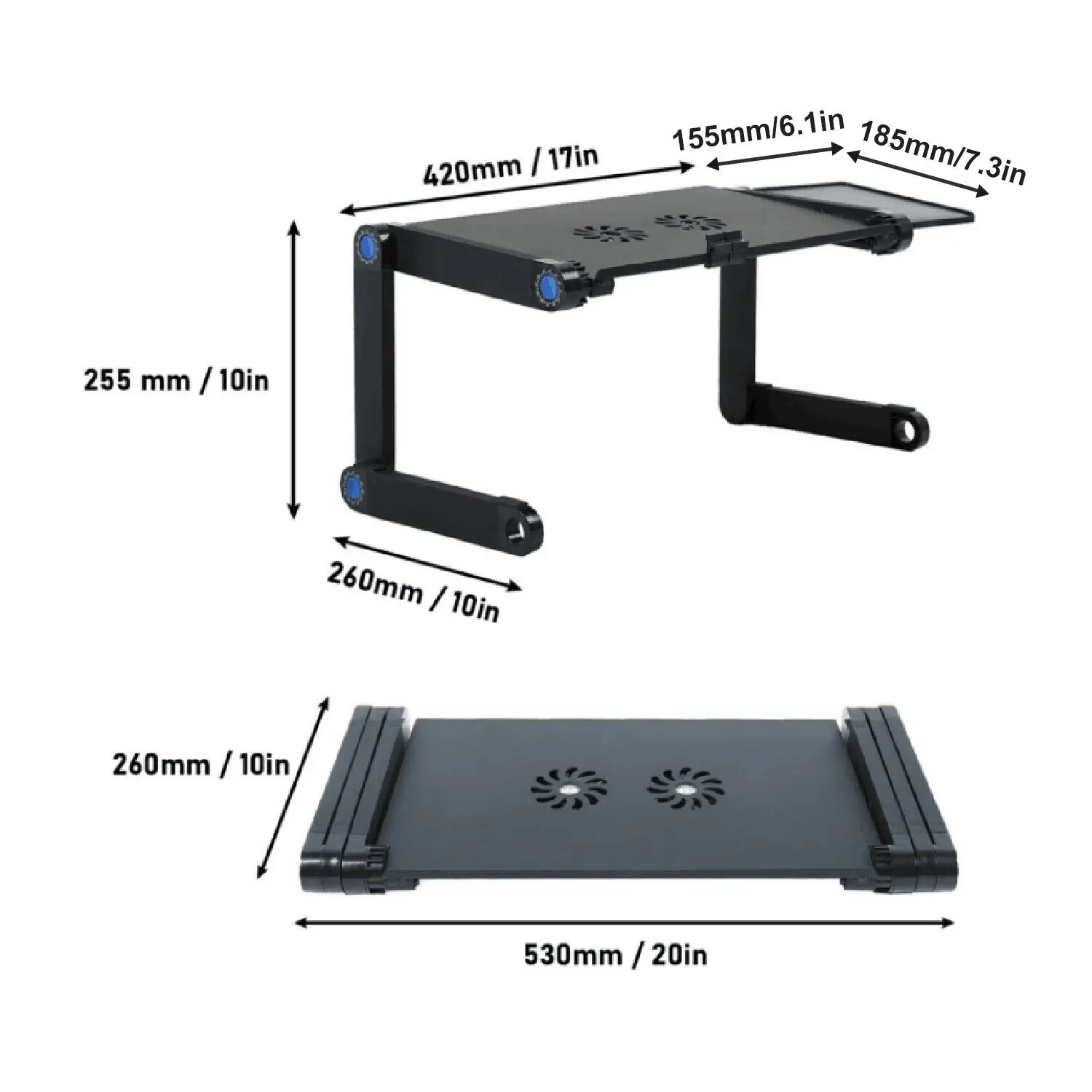 【Light weight & Sturdy Material】The Portable Folding Laptop stand adopts light and high-intensity aluminum tray with 4 anti-slip leg-pads and 6 robust adjustable ABS auto-locking joints. This unique and elegant desk is stylish and modern.
