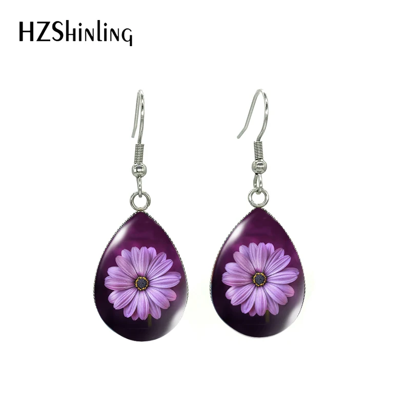 Отзывы о Серьги модные 2020 года "Фиолетовая маргаритка" с стеклянной кабошонной вставкой на французской застежке