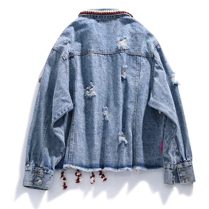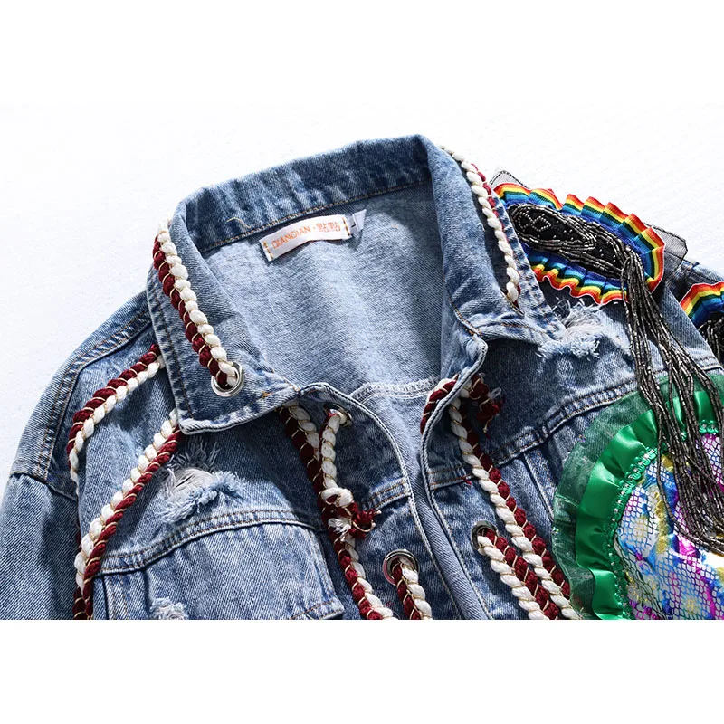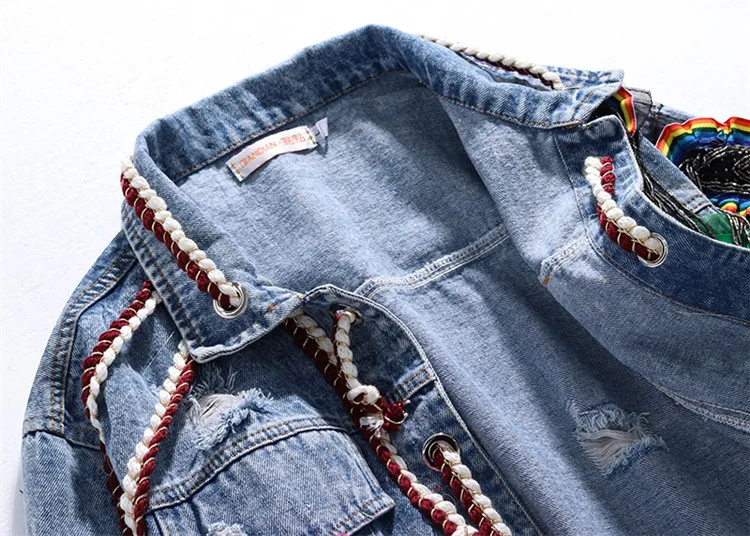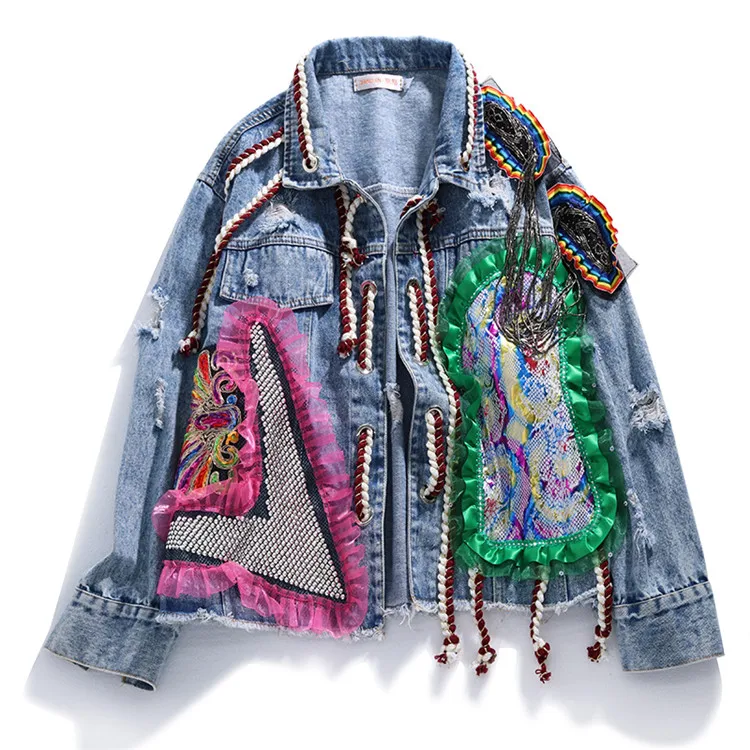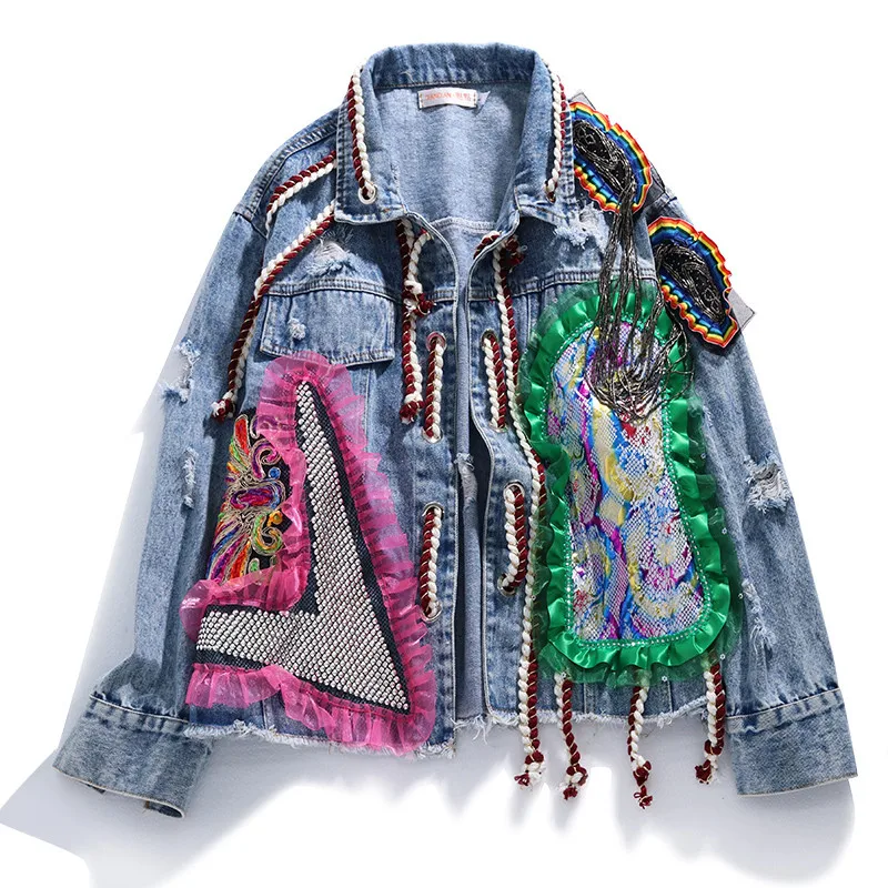 Отзывы о Женская джинсовая куртка в стиле хип-хоп с вышивкой виде бриллиантов весна-осень