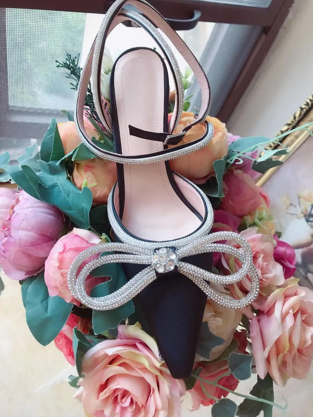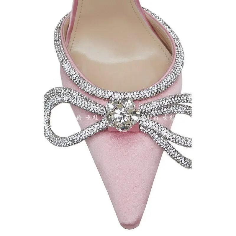 Отзывы о Женские атласные сандалии Baotou летние туфли с острым носком на высоком тонком